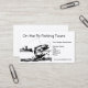 A simple black and white graphic depicting a fisherman standing in a small boat on a lake or river, with a trout type fish on the end of his fishing line jumping out of the water. Suitable for businesses catering to fishing guide services, recreational lodging, fishing bait, tackle, rods, gear etc, or other outdoor R & R activities. Indestructible, waterproof cardstock was chosen to be safe on the water, but multiple paper choices and colours are available!