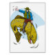 graphic design illustration of a fisherman riding a trout like a rodeo