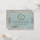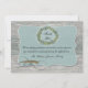 This fisherman's sympathy thank you has a minnow lure with string strung around the lure setting on top of a light teal banner. At the top middle of the banner is a wreath made from trees one would find in the woods and include cedar, pine and eucalyptus branches. The background is a barn look with a centre in light teal.