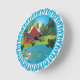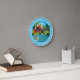 The clock did not take as long to arrive as I thought it might and was extremely well packaged. I didn't do the measurements so I didn't realize it is a little smaller than the average clock but that does not matter (just make sure you check if that's important to you).It is really nifty! It seems very solid and well made not flimsy at all. It has been going well and has kept good time in its few weeks on my wall. Nice product. Gets noticed too! Nicer in real life than the picture but true to the picture