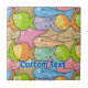 Seamless pattern background of colourful happy, smiling fish cartoons. Custom text.