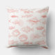 Hand - drawn vector pattern with various fishes in Living Coral colour and white background.