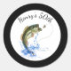 Large mouth bass jumping after fly fishing lure out of blue water splash. Simply customise the text for your fisherman's birthday party. The year can be changed from 50th to whatever you want!! Bass hand drawn by artist ©Tina Hesskew of Fishing Hunting Life.