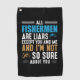The golf towel exceeded my expectations! My husband actually approved of it! He liked the picture quality, thickness and overall usefulness of the golf towel I ordered to commemorate his lowest ever golf score. He liked it so well that I ordered 8 more towels with photos of his home golf course. Each one of the eight has the name of one of his golf group members. I will give them as party favors at my husband's 70th birthday party later this year. The different names were easy to add because the Zazzle template is so very easy to use. The colors were bright and authentic in all 9 of the towels that I made. The one of the 9 that I ordered has come out of the wash and line dry looking great.