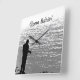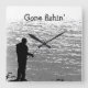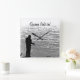 Let's get away from it all and go fishing! Easily customise or remove the text on this wall clock which features a black and white image of a solitary fisherman standing on a rock ledge at Seneca Lake in Geneva, New York. The text reads: Gone fishin'