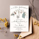 A little cowboy is on the way Invite featuring a fishing rod with boho baby overalls, boots, fish and pacifier