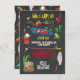 Is you child O-fish-ally having a birthday? Then this invitation is great for the kid that loves fishing! Features pond, rowboat, fish, can of worms, hooks, fishing gear, net and other fishing elements, all on a chalkboard background. Hand drawn illustration my McBooboos