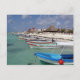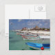 Postcard with an image of fishing boats moored along the shoreline of the sleepy village of Puerto Morelos, Mexico. See matching sticker. See the entire Mexico Postcard collection in the CARDS, POSTCARDS & STICKERS section.