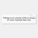 Bumper sticker with the statement "Fishing is not a matter of life or death, it's more important than that."