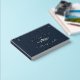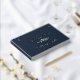 Welcome guests to your cottage house or rental cabin with this pretty guest book in dark navy blue with real silver foil. This personalised book has an anchor and stripe pattern on the back, and the front includes a fish, anchor and starfish motifs. The custom text templates have room for your established date, cabin name, and a line encouraging your visitors to sign. You can also add text to the spine.