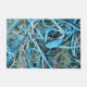 A colourful design of fishing net and bright blue rope from a boat and stored on the harbour jetty.