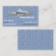 Stylised chrome bonefish graphic on blue pattern background ... great business card for fishing guides OR could even be modified for a seafood restaurant.