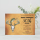 Rustic western Fishing and Hunting Themed Birthday Invitation Card. Enter your details and it's ready to go! Large mouth Bass Jumping to catch a vintage Hula Popper fishing lure above a large antler deer skull. Perfect for the hunting fisherman or fishing woman in your life. *Look for matching products in my store's collections.