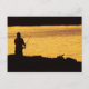 Customisable postcard with a photograph of a person fishing on the bank of a bay in the early morning