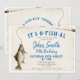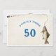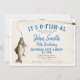 Fishing themed man's birthday invitation featuring a fishing rod and fishing reel on an aged paper background image. Great for older male but can be used for any age.