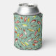 This can cooler features fishing lure illustrations inspired by vintage fishing lures in shades of red and yellow on a pale teal background.