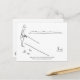 Do you happen to be looking for a fishing postcard? Perhaps you're looking for a duck postcard. Well, guess what. This postcard combines the best of those two kinds of postcards in a funny way. How? Take a look. In this cartoon set in the outdoors, a fisherman is fishing beside a lake. A talking duck swims towards him and asks a funny question: "Why aren’t you content with fish sticks? I'd be content with breadsticks." What's the fisherman's answer? Who knows? What would your answer be? Only you know. At any rate, if you'd be content with a funny cartoon fishing postcard, this one may be for you.