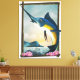 Fishing poster in a vintage style. Sea Fishing sports poster.
