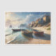 Fishing rawboats on the shore near costal village tissue paper