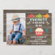 Cute fishing themed birthday invitation featuring three fish, fishing bobber, cotton tail and more. The background is a wood image giving the invitation a rustic look. This is a sure way to set the scene for your little boy's fishing theme first birthday party.