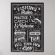 A list of rules for fishing in a beautifully illustrated format. Background can be changed to any colour.