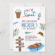 Celebrate your little boy's special day with our fishing birthday invite! Designed to make your party planning a breeze, with adorable and eye-catching designs that will make your little fisherman happy and impress your guests. Design features fishing bucket, fish on a fishing line, two lures, cattails, a fishing hat and a fishing boat. And the main feature is the signpost containing the day of the week, the date and the time. Just customise it with your own details.