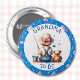 Personalised Grandma to be baby shower buttons. An adorable sweet little ai watercolor illustration of a baby girl in cute suspenders fishing with a teddy bear. The colours of this invitations include blue and pink.