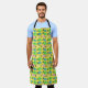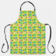 Colourful fish design apron suitable for a fishmonger, fish seller, or simply someone who wants a bright attractive apron to wear in the kitchen. An attractive designed apron decorated with a pattern of colourful fish. Gift idea for a fish lover. Yellow background.