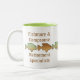 A retirement mug with six fish swimming across this mug with the words 'Fishmore & Campsome, Retirement Specialists'. Perfect for any newly retired person.