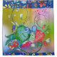 A colourful pod of anticipating fish swimming in a colourful background.