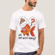 This white garment features a cartoon orange blowfish with large eyes, seemingly confused. Above the fish are two thought bubbles, one containing a slice of pizza and the other a question mark. The text "Wait... What was I doing?" is printed below the fish. It's a whimsical design for pizza lovers and those with a sense of humour.