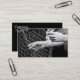 Business card with a front photo of hands holding fishing net. Customisable. Black backside with info.