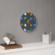 The clock did not take as long to arrive as I thought it might and was extremely well packaged. I didn't do the measurements so I didn't realize it is a little smaller than the average clock but that does not matter (just make sure you check if that's important to you).It is really nifty! It seems very solid and well made not flimsy at all. It has been going well and has kept good time in its few weeks on my wall. Nice product. Gets noticed too! Nicer in real life than the picture but true to the picture
