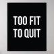 "Too Fit To Quit" Funny weightlifting motivational quote, in a cool black and white typographic design. Get inspired to get strong, look hot, and be your absolute best. Would make an ideal gift for a personal trainer, coach, gym rat, body builder etc.