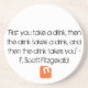 “First you take a drink, then the drink takes a drink, then the drink takes you.” ― F. Scott Fitzgerald