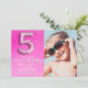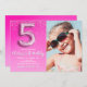 "Five and Fabulous Pink Glitter Birthday Photo Invitation