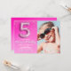 Add a personal touch with this pink glitter 5th birthday invitation featuring your child’s photo and a fabulous modern design.