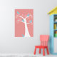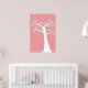 Five adorable abstract blue birds hang out in a white tree against a pink background on a print