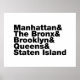 New York City is often referred to collectively as the 5 boroughs (Manhattan, The Bronx, Brooklyn, Queens and Staten Island).
