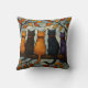 Five Cats on a Tree Branch Stained Glass Style Cushion