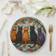 Five Cats on a Tree Branch Stained Glass Style Paper Plate