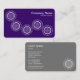 A business/profile card template with a stylish five gear wheel motif on the front. Company name and business type on the front top right. Name and all other contact on the reverse with a single gear motif in the bottom right. Ready to be customised with your details, suitable for many types of business.