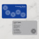 A business/profile card template with a stylish five gear wheel motif on the front. Company name and business type on the front top right. Name and all other contact on the reverse with a single gear motif in the bottom right. Ready to be customised with your details, suitable for many types of business.