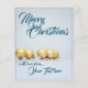 Five golden christmas balls. The personal text is only an example and can be customised accordingly.