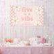 Five is a Vibe! Retro checker print with Daisies Birthday party banner in pink.