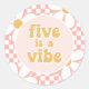 Five is a Vibe Pink Daisy Chequered Classic Round Sticker