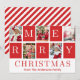 Celebrate this holiday season with a personalised touch through this festive Christmas card. The front of the card showcases the word “MERRY” in vibrant red alternating blocks, with each block highlighting a crisp white letter. The letters “ME” are positioned on top, with “RRY” elegantly placed underneath, creating a bold and joyful greeting. Between these letters, five of your favourite photos are thoughtfully interwoven, adding a personal and heartfelt touch against the clean white background. The word “CHRISTMAS” is prominently displayed beneath in festive red lettering, capturing the spirit of the season. Add your family name at the bottom, leaving a lasting impression of warmth and togetherness. The reverse side features a festive red and white candy cane striped pattern, reminiscent of classic holiday fun. This card is a perfect blend of personal sentiment and seasonal cheer, crafted to bring joy to your loved ones. XX