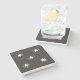 This stone coaster is printed with the Five Star artwork in white, on a black background. The back is lined with cork.
