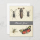 The front of this vintage style thank you postcard design features the appreciative message "Thank You!" in script like text, along with a depiction of five insects. The back features a personalised message of gratitude. A postcard like this could be used to express gratitude for something special that somebody has done.