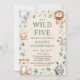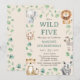 Five Wild Jungle Safari Animals 5th Birthday Theme Invitation